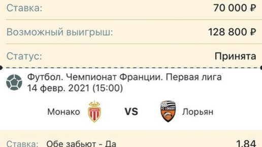 Мой прогноз на футбол Монако - Лорьян 14.02.21