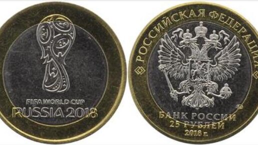 К Чемпионату Мира по футболу 2018 года Fifa, который скоро начнется в нашей стране, Банк России отчеканил различные монеты с номиналом в 25 рублей. Это изображение кубка и эмблемы предстоящего чемпионата. Монеты выпущены в обычном исполнении и в красочном. Продаются от 40 до 600 рублей соответственно. Но мало кто знает, что есть одна уникальная монета, которая была продана за большие деньги. Давайте посмотрим на нее и попробуем разгадать ее историю. Итак, на фото мы видим необычную монету, состоящую из двух металлов...