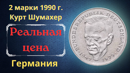 Цена монеты 2 марки 1990 года. Курт Шумахер. 30 лет Федеративной Республике. Разновидности. Германия (ФРГ).