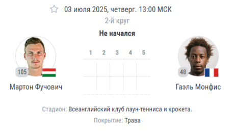 🎾 Полная аналитика матча Уимблдон-2025: Мартон Фучович (105-й в мире) vs Гаэль Монфис (48-й в мире)