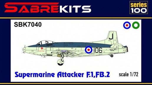 Чешская SabreKits перепаковала со своей декалью модель Supermarine Attacker F.1/FB.2 в масштабе 1/72 разработки AZ Model 2011 года: Supermarine Attacker F.1/FB.2 (каталожный номер SBK7040)