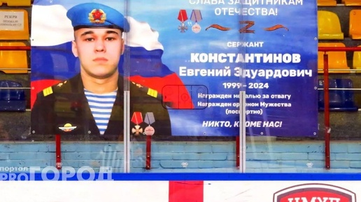 В Новочебоксарске прошла хоккейная игра в память о Евгении Константинове, игроке ХК «Сокол», погибшем в бою в Курской области