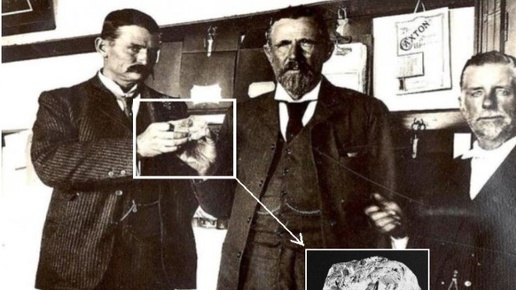 26 января 1905 года в шахтах Южной Африки был найден Алмаз "Куллинан", который получил свое название в честь владельца рудника Томаса Куллинана. "Куллинан" – самый дорогой и большой алмаз, который удавалось найти на сегодняшний день. Первоначально его масса составляла 3106,75 карат. На фото ниже - Фредерик Уэлс и Томас Куллинан с тем самым алмазом,1905 год. Через несколько лет после обнаружения (в 1907 году) алмаз стал подарком ко дню рождения короля Англии Эдуарда VII от правительства колонии Трансвааль...
