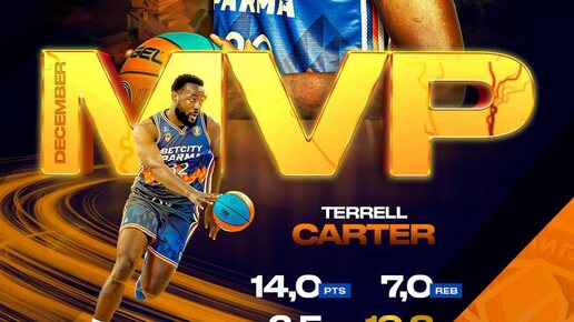 ! В декабре наиболее полезным игроком признан Террелл Картер из «БЕТСИТИ ПАРМЫ». 14 очков, 7 подборов, 2,5 передачи и 19,3 балла у него в прошлом месяце. Заслужил? 🤔 🛒 Наше приложение в Google Play...