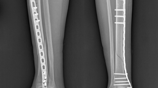 🏥 Травма хоккеиста: перелом голени Прекрасное субботнее утро, хорошее настроение и увлечение на уровне профессиональных достижений в хоккее. Да, именно хоккей познакомил нашего пациента с нами, врачами-травматологами-ортопедами Ильинской больницы. Это были последние минуты игры, когда во время торможения раздался хруст, который замер и словно повис в воздухе, будто колокольный звон. Пациент госпитализирован в стационар Ильинской больницы с диагнозом закрытый оскольчатый диафизарный перелом обеих костей голени...