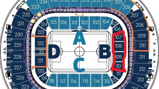 107 108 109 110. Сектора за воротами на нижнем ярусе, трибуна В