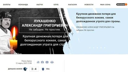 Саркастичный некролог Лукашенко появился на сайте минского ХК «Динамо»
