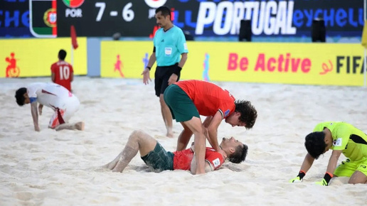 На чемпионате мира по пляжному футболу, который сегодня завершается на Сейшельских островах, наступила пора решающих матчей. В матче за бронзовые награды встречались сборные Португалии и Сенегала. В напряжённом матче победу одержали европейские бразильцы. Сборная Сенегала дважды выходила вперёд, однако сохранить преимущество не смогла — 2:3. Сенегал — Португалия — 2:3 Голы: 1:0 — Диатта (3), 1:1 — Гадиага (АГ, 26), 2:1 — Фаль (31), 2:2 — Коимбра (32), 2:3 — Андре Лоуренцо (33). В 18.30 по минскому времени матч за золотые награды начнёт сборная Беларуси...