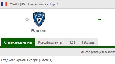 И снова приветствую тебя, уважаемый читатель. Сегодня буду делать ставку на матч Бастия - Сет. Это матч 3-ей французской лиги.