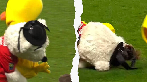 Маскот «Ренна» вырубил коллегу из «Нанта» перед дерби. Понадобились носилки