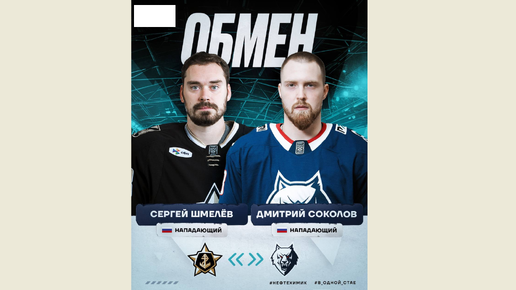 Хоккейные команды «Нефтехимик» и «Адмирал» обменялись игроками. К «волкам» присоединился 31-летний Сергей Шмелев. В «Адмирал» ушел нападающий Дмитрий Соколов. Об этом в Телеграм-канале сообщают представители «Нефтехимика».