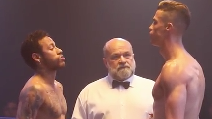 Криштиану Роналду - Неймар сошлись на боксерском ринге? Футбольные суперзвезды объединились для рекламной кампании.