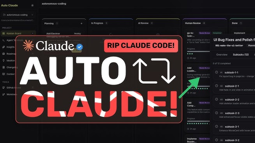 Claude Code — ИИ-помощник, которому можно давать задачи по коду. Работает хорошо, но ты всё равно сидишь и смотришь, что он делает. Auto Claude — это следующий уровень. Ты даёшь задачу и уходишь. Агенты сами разбираются: планируют, пишут код, тестируют, проверяют на ошибки. Возвращаешься — готово. Представь команду из нескольких разработчиков. Только это не люди, а ИИ-агенты. Каждый работает над своей частью задачи в отдельном пространстве, чтобы не мешать друг другу. Можно запустить до 12 агентов одновременно...