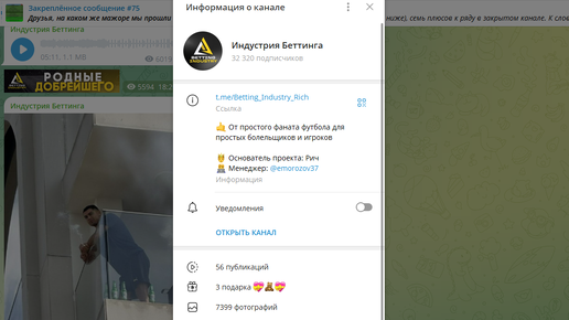Телеграм-канал “Индустрия Беттинга” основан анонимным каппером. В сообществе пользователям предлагают получить аналитику различных чемпионатов, бесплатные прогнозы, а также купить проход в закрытую группу, чтобы приумножить заработок в несколько раз. Сложность с выбором проекта со ставками появляется не только у новичков, а и у опытных беттеров, поскольку мошенники научились подделывать любые виды доказательств огромного дохода, начиная от статистики и заканчивая отзывами. Наша команда проверит телеграм-канал Индустрия Беттинга на следы мошенничества...