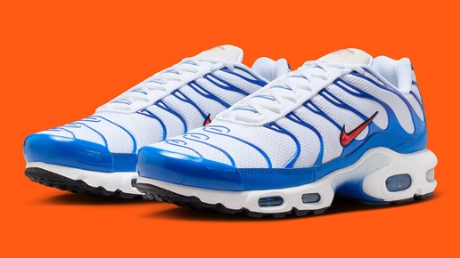 " 🏀 Nike Air Max Plus – культовая модель, завоевавшая популярность с момента выпуска. Кроссовки представлены в расцветке, вдохновленной командой New York Knicks, сочетающей белый, “Signal Blue” и “Team Orange”...