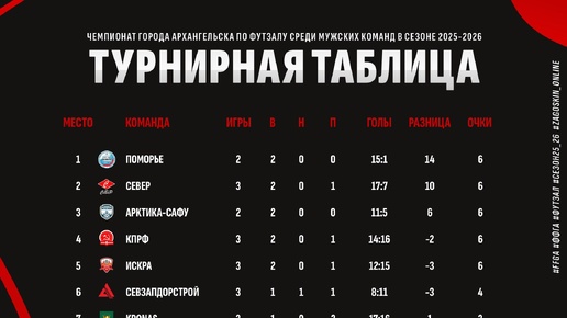 🔥 Турнирная таблица | Суперлига | 14.10.2025 #zagoskin_online #ффга #футзал #перваялига #высшаялига #втораялига #третьялига #суперлига #кубокгорода #сезон25_26