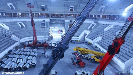 В следующем году на один спортивный объект в Нижнем Новгороде станет больше. На Стрелке откроется Ледовый дворец, где будут проходить соревнования по хоккею, фигурному катанию, керлингу, следж-хоккею. Нам удалось побывать на стройке и увидеть ее масштабы изнутри. Каркас здания уже готов, и сейчас будущий дворец видно издалека. Он будет рассчитан на 12 тысяч зрителей. Сейчас рабочие занимаются отделкой фасада. Снаружи продолжается благоустройство прилегающей территории. Хотя строительство еще не закончено, было решено привести окружающее дворец пространство в порядок, пока позволяет погода...