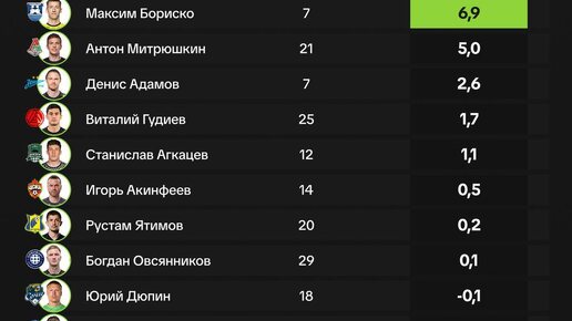 🧤Никита Медведев занял 10-е место среди вратарей лиги с показателем –0,3 PSxG