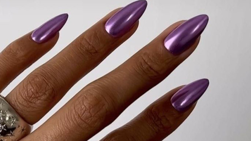 Фиолетовые ногти с втиркой - тренд зимы 2025 года