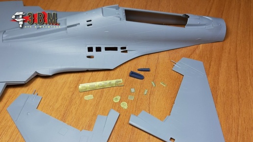 В.М. показала примерку фототравленых и выращенных на 3D-принтере деталей своего будущего набора для даталировки новой модели Су-30 в масштабе 1/48 от "Звезды". Штанга топливоприемника пока стоит тестовая, также пока отсутствуют выштамповка и ствол пушки - последний будет точеным...