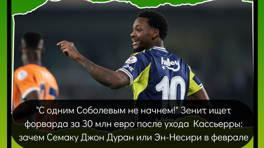 "С одним Соболевым не начнем!" Зенит ищет форварда за 30 млн евро после ухода Кассьерры: зачем Семаку Джон Дуран или Эн-Несири в феврале