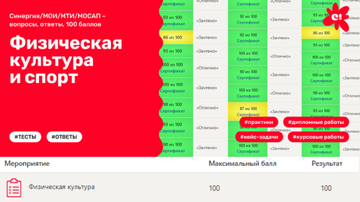Физическая культура и спорт (Синергия/МОИ/МТИ/МОСАП – вопросы, ответы, 100 баллов)