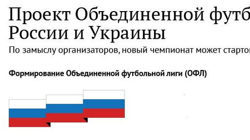 Объединённый чемпионат России и Украины по футболу? Фантазия? Нет, такой проект существовал с 2012 года и планировался к реализации в 2015 году. 26 декабря 2012 года по предложению главных клубов Российской футбольной премьер-лиги был запущен процесс формирования Оргкомитета Объединённой футбольной лиги, который позже получил статус автономной некоммерческой организации «Оргкомитет ОФЛ». Учредителями Оргкомитета выступили Российская футбольная премьер-лига и фонд социальных инициатив «Газпром»....