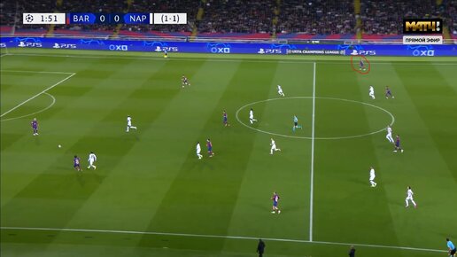 Игра началась с отбора 1 в 1 Кубарси у Осимена, рабоны от Рафинья на Левандовского и удара Ямала. В этом предложении я описал первые 35 секунд игры. Стоит отметить смену позиций у Барселоны, вот тут на скрине Конселу играет не в центре, как это было в прошлом матче ЛаЛиги, а на фланге, меняясь с Рафиньей. А тут ситуационно Левандовски ушел на Фланг, освободив центр Фермину Интересно было наблюдать за тем, как Барселона, по факту, зеркалила схему Наполи, когда находились в позиционной защите. Сейчас...