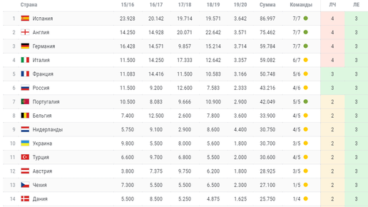 Что влияет на место ассоциации в рейтинге УЕФА? От чего зависит количество клубов, имеющих право сыграть в Лиге чемпионов и Лиге Европы? Какой прогноз можно дать на ближайший евросезон? Рейтинг каждой...