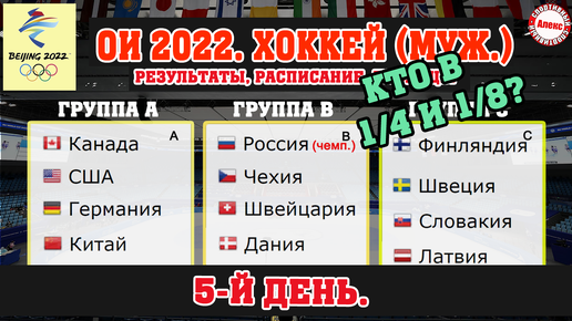 Известны все пары плей-офф. Хоккей. Олимпиада. Итоги 5 дня. Результаты. Расписание. Таблица.
