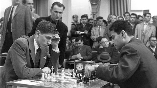 Роберт Фишер, играя черными, перехитрил Ласло Забо на олимпиаде в Лейпциге, 1960
