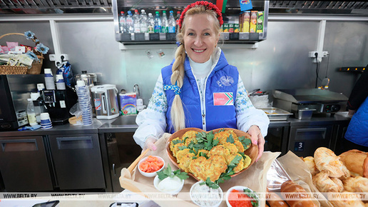Праздник "Марафона единства", основной локацией которого в Молодечно стала площадка у спортивной школы "Олимпик-2011", набирает обороты. При таком количестве активностей (здесь стартовал городской квест "Это все мое родное") восстановить силы помогут вкусности из разных регионов Беларуси. Попробовать их можно в импровизированном фуд-поезде, передает корреспондент БЕЛТА. Тон на торговой площадке задает мобильный ресторан Мак.by, который приехал удивлять жителей и гостей Молодечно не только своими объемами, но и разнообразным меню...