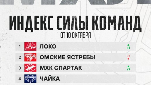 «Локо»🚂 возглавил Индекс силы! Ярославская команда сместила с первого «Омских Ястребов»🦅, которые накануне впервые проиграли в этом сезоне. На девять пунктов поднялись «Белые Медведи»🐻❄️, на семь — «Спартак»🔴 *Индекс силы — это рейтинг, который показывает, какие команды сейчас в форме и обыгрывают фаворитов...