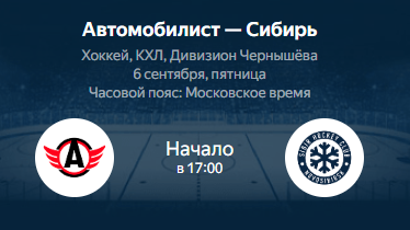 Автомобилист - Сибирь: смотреть трансляцию матча КХЛ