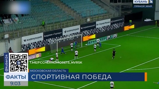 Видео канала «Кубань 24» Первый мяч на 4-й минуте встречи забили в ворота «Черноморца». Автором гола стал полузащитник хозяев поля Александр Ломакин. Сравнять счет новороссийцам удалось к концу первого тайма. На 38-й минуте ворота соперника успешно поразил полузащитник Илья Родионов. Вперед гости вышли в добавленное к первому тайму время. На 45+3-й минуте игры второй гол «Торпедо» забил нападающий гостей Саид Алиев. Во втором тайме Алиев оформил дубль, забив на 54-й минуте. Автором четвертого гола встречи стал нападающий Олег Николаев...