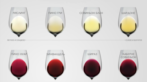 ТИПЫ ВИННОГО ВИНОГРАДА Вино производится из винограда, но не из обычного пищевого, который вы найдете в продуктовом магазине. Винный виноград (латинское название: Vitis vinifera) имеет толстую кожуру, он маленький, сладкий и содержит косточки. Есть много разных сортов винного винограда — более тысячи, — но вот некоторые распространенные варианты, вино из которых вы найдете в магазине. РАСПРОСТРАНЕННЫЕ ТИПЫ ВИНА 8 вин, включенных в эту статью, представляют 6 из 9 винных стилей. Попробовав все 8 вин, вы получите хороший пример потенциальной гаммы вкусов, присутствующих во всех винах...