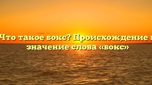 Что такое бокс? Происхождение и значение слова «бокс» Такое всем знакомое слово «бокс» большей частью встречается в спортивной жизни. У этого спорта имеется множество фанатов по всему миру, но не все знают истинное происхождение и значение слова «бокс» в его истинной сути. Ведь оно достаточно интересно для изучения, и имеет немало тонкостей. Этимология слова Заглянув в словарь, можно увидеть достаточно интересную историю слова «бокс». Истинно слово пришло из английского языка. Там существует понятие to box — «драться на ринге», «боксировать»...