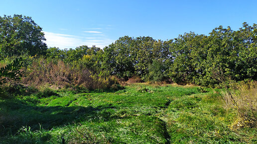 Нельзя сказать, что я сильно люблю грецкие орехи, но многие блюда, и не только выпечка, содержат их. Покупать довольно дорого, грецкие стоят почти также, как миндаль или фундук, а вот собрать самостоятельно – самое то. Однако места знать надо. У нас в области есть лесополосы из орехов, а есть и насаждения, сделанные с целью сбора. Вряд ли эту рощу посадили с целью получения урожая грецких орехов. Вероятнее всего это как раз лесополоса, но ореховых деревьев тут очень много, и хватает на всех желающих, о чем говорят многочисленные следы сбора плодов под деревьями...
