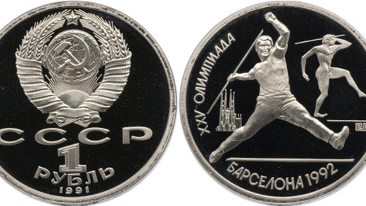 Оригинал или копия? 1 рубль 1991 года «Метание копья. Игры XXV Олимпиады. Барселона. 1992».