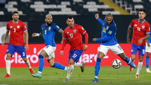 В Южно-Американской отборочной группе участвуют сразу всем скопом десять команд. По итогам отбора путёвку на Чм-2022 в Катар получают пять сборных занявших самые верхние места . Матчи отбора проводятся по круговой системе "дом-выезд",по две игры с каждой из команд. Чили -Бразилия. Чилийцы могли пару раз забить в первом тайме,но удачно сыграл вратарь бразильской сборной Вевертон из клуба "Палмейрос". Он отразил все атаки на свои ворота. Бразилец неймар старался и вёл за собой партнёров. В итоге это и принесло успех бразильцам во втором тайме...
