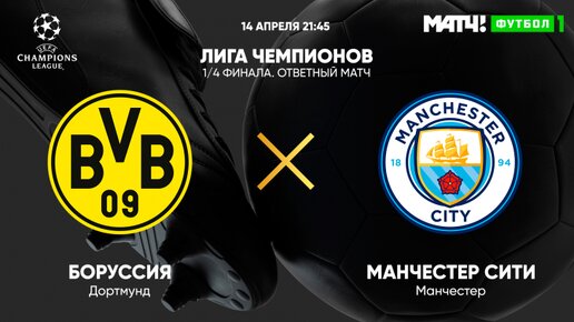 Ответный матч Боруссия Дортмунд против Манчестер Сити 1/4 Лиги Чемпионов.