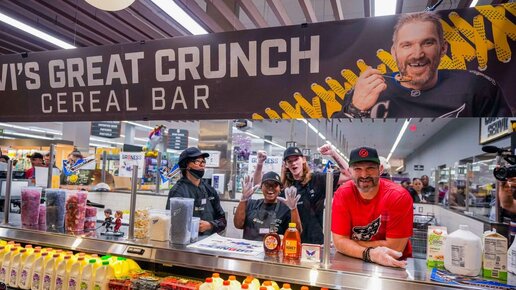 🥞 Кажется, мы знаем, чем займётся Александр Овечкин после завершения карьеры 🙌 Российский капитан «Вашингтона» представил свою линейку сухих завтраков. Он даже выступил в роли работника бара и угостил желающих своими хлопьями с молоком под названием Great Crunch...