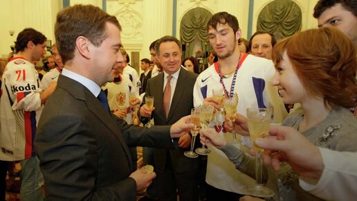 Овечкин пришёл в Кремль в сланцах. Культовый приём сборной России президентом Медведевым