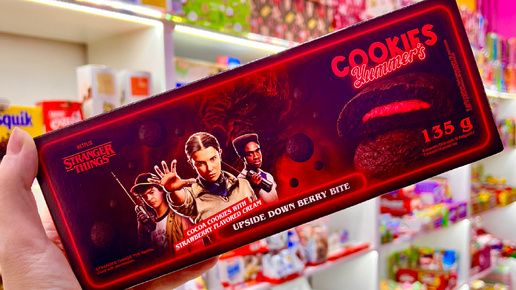И теперь у нас имеются не только яйца Киндер Джой «Очень странные дела», но и печенье Cookies Yummer’s  Stranger Things Chocolate Strawberry Cookies Down Berry Bite ( шоколад-клубника, 135 гр) , созданное специально для фанатов одноимённого сериала Netflix...