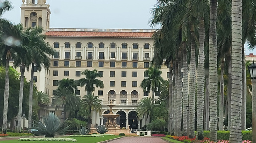 Это продолжение. Начало здесь. От Форта Лодердейл решили проехаться по дороге 1A1, идущей вдоль берега, и посмотреть, как живут богатые люди. Побережье представляет собой косу, по которой идёт дорога, с одной стороны дороги - особняки с видом на океан, а через дорогу - залив, защищённый от волн, в котором стоят яхты владельцев этих особняков. Проехать мимо Мар-а-Лаго Трампа не получилось - дорога перегорожена бетонными блоками, стоят полицейские и все машины направляются в объезд. В Палм-Бич есть огромный отель Брейкерс...