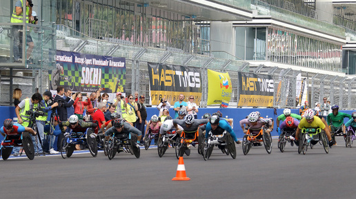 Не сдавать позиции. В Сочи спортсмены-колясочники закаляли характер на главной гоночной трассе страны. 21 километр на спортивных колясках по трассе «Сочи Автодром» проехали 26 атлетов из России и 5 зарубежных стран. Идея проведения международных гонок на колясках появилась во время Паралимпиады в Сочи, по завершении которой была создана российская легкоатлетическая команда бегунов-колясочников. И вот уже в 4 раз на трассе «Сочи Автодром» проходит Полумарафон с участием не только российских спортсменов, но и представителей зарубежных стран...