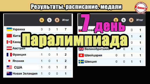 Паралимпийские игры. Итоги 7-го дня. Медальный зачёт.