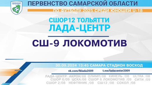 Очередной матч Первенства Самарской области по футболу U-18 с командой #СШ9Локомотив2009!!! Приходите посмотреть классный футбол или смотрите трансляцию в нашей группе!!! 🏆#ЮношескийФутбол | Первенство СО 📌 12 ИЮНЯ 2025 (ЧЕТВЕРГ) ⛳️ САМАРА, СТАДИОН ВОСХОД 🔔 Начало в 15-30 (TLT) "ЛАДА-ЦЕНТР" 💙 vs...