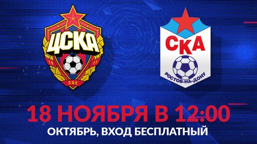 18 ноября на стадионе «Октябрь» (ул. Живописная, 21, въезд со стороны ул. Паршина, 16) основная команда ПФК ЦСКА без футболистов, вызванных в национальные сборные, проведет товарищеский матч с ростовским СКА...