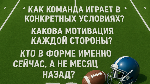 📌 Оглавление Представь: ты ставишь $100 на очевидного фаворита. Всё идёт по плану. До конца игры минута. И вдруг перехват мяча. Матч поворачивается в соверешнно другой итог сценария. Ставка на логичный исход сгорает. Добро пожаловать в НФЛ лигу, где здравое рассуждение о текущей ситуации на поле может кардинально поменятся за пару минут когда казалось ничто не предвещает кардинального изменения и такое каждые выходные сезона. В большинстве видов спорта статистика работает и в НФЛ в том числе тоже,...